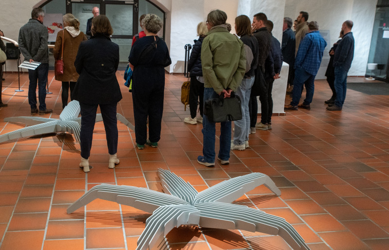 Elke Dreiers zweiteiliges 2023 preisgekröntes Werk „Massages (Pattern I & II)“ in der Kunstausstellung im Rahmen der Allgäuer Festwoche, VG Bildkunst, 2025Die Ausstellung versteht sich als offenes Übungssystem: Sie aktiviert, fordert zur bewussten Wahrnehmung heraus und ermöglicht eine dialogische Auseinandersetzung mit dem eigenen Körper im Raum. Dreier bietet keine Antworten, sondern Situationen – tastende Vorschläge für ein anderes Sehen, Spüren, Handeln.