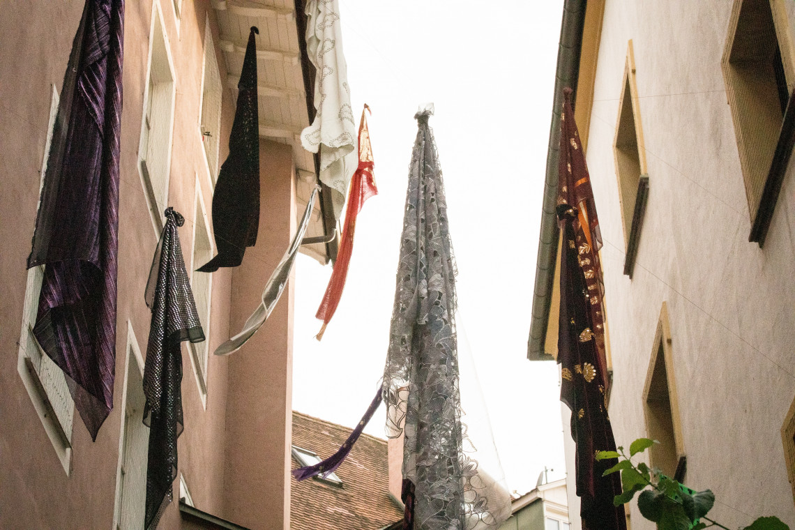 Mit einer Installation im Innenhof der Kunsthalle, der wie ein verborgenes Gärtchen mit Klängen und Farben zum Verweilen verführt, fand Mandas Inspiration aus Literatur und Musik ihren Ausdruck und ließ ihren interdisziplinären Ansatz erfahrbar werden.