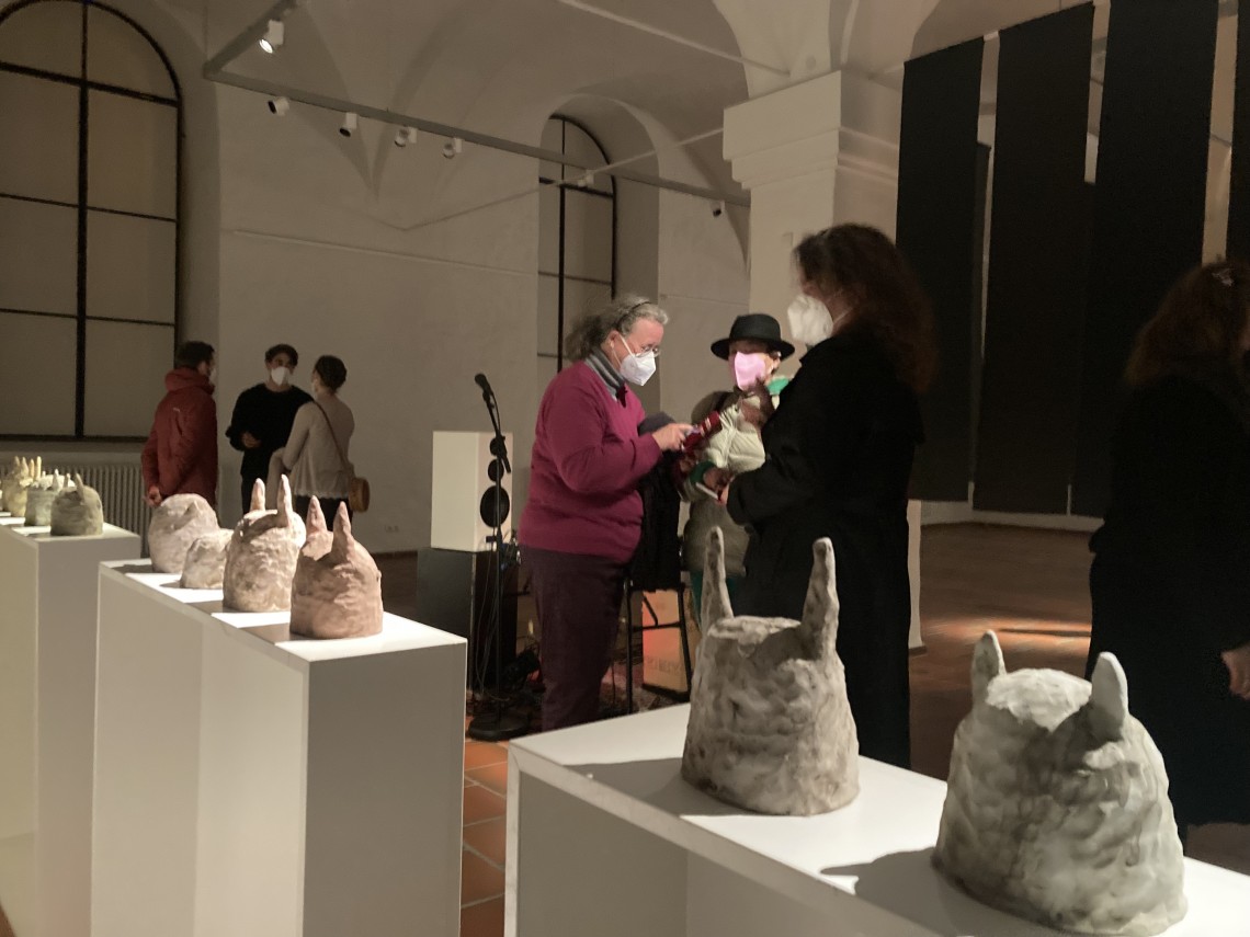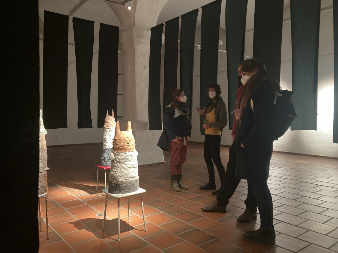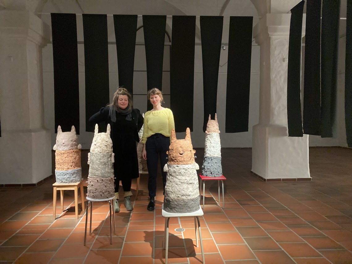 Ausstellungsplakat Anna Dorothea Klug mit eulenähnlichem Tonwesen