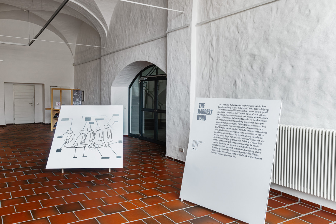 Die Künstlerin Naho Matsuda (*1986) widmet sich in ihrer Einzelausstellung in drei Teilen dem Thema Entschuldigung. Das Untersuchungsfeld der Künstlerin ist der aktuelle gesellschaftliche Diskurs: es sind Themen wie die Cancel Culture, die Matsuda in den Fokus nimmt, aber auch die #metoo-Debatte, sowie politische oder industrielle Skandale. Die sozialen Medien als vorrangiger Ort der Verhandlung geben durch ihre eigene Gesetzmäßigkeit eine eigene Färbung hinzu – indem sie Sachverhalte entweder verzerrt wiedergeben, Prozesse aber auch beschleunigen können.